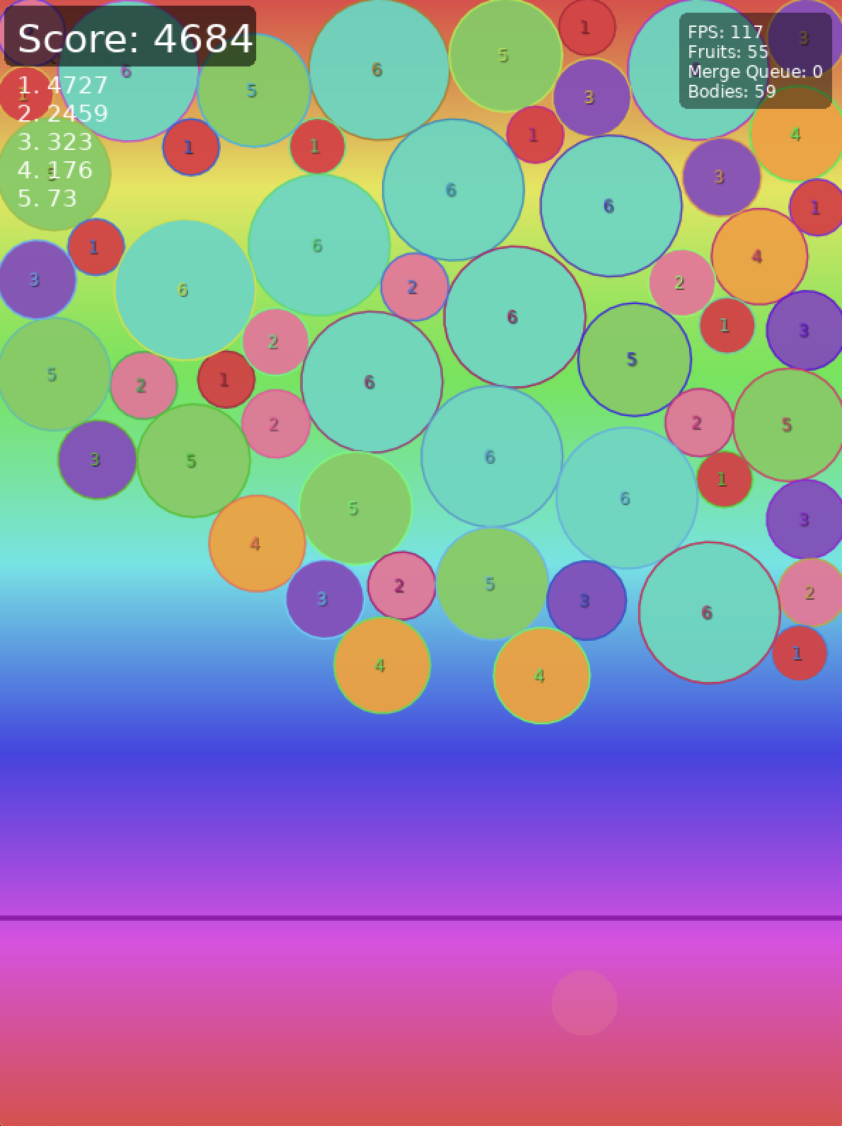 merge game styled after the fruit merge mini game in Tasty Travels. i was playing the mini game ad as i was walking home last night and when i downloaded the full game I discovered that fruit merge had been removed. this game was created as a substitute with Lua, Visual Studio Code, and co-pilot xoxoxo